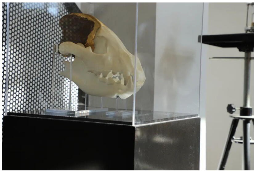 most prominent position at the entrance for his lacquer art, but for an animal fossil.