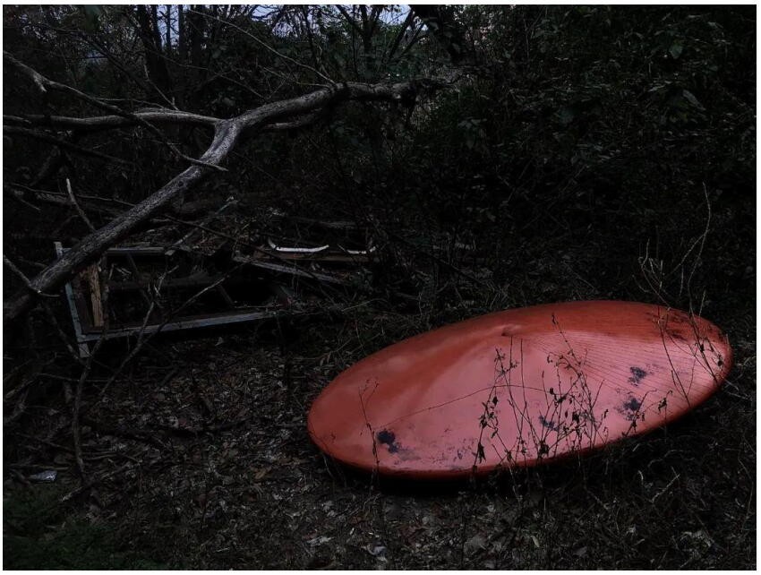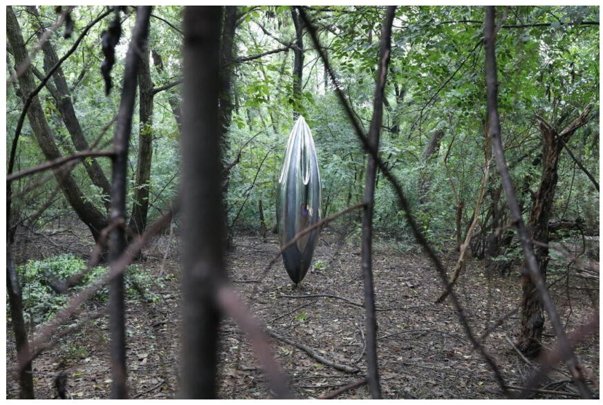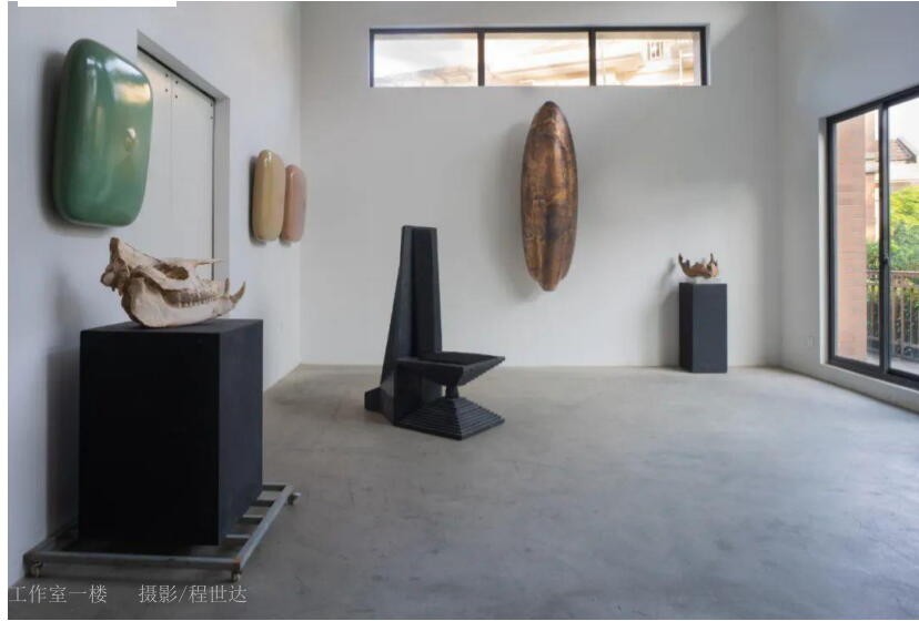 Getting off the car and looking towards Sun Wenjia's studio, I noticed that an item from his M series was lying on the greenery in front of the door. It was coated in lacquer, appearing as if it were freely floating in water. Later, standing on the second floor and looking out through the floor-to-ceiling window, Sun Wenjia said: "Take it out to dry, its colour changed in less than half