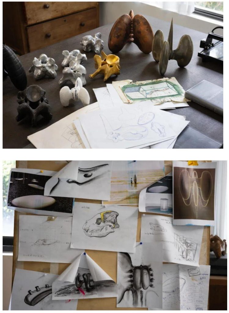 As he spoke, he opened his phone to show the 'Regrowth' series from the solo exhibition 'Everything Returns to Rest', which included a piece featuring an ancient horse head fossil restored with traditional lacquer, alongside more modern fossils for contrast. Through this comparison, one can see that after centuries of evolution, they only differ slightly in their dentition. Yet, even so, it evokes reflections on their respective living conditions at the time, the historical context, their positions in human society, and how they differ from today. It captures a fascinating passage of history.
