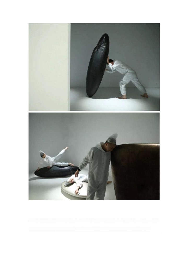 This idea perhaps reached its pinnacle in Sun Wenjia's works of 'bodily object performance'. In February 2021, the "Time Capsule" exhibition at the "Island of Time" in Fuzhou Rongqiao Bund One became an art space related to the body and time. Six contemporary young dancers engaged with Sun Wenjia's work, using movements, expressions, and postures to express their understanding of the pieces, creating an immersive scene integrating lighting, dynamics, and sensing with a sense of future space-time. During this process, Sun Wenjia did not communicate much about the details of the work with the dancers, which allowed the dance interpretation to be freer. On one hand, the dancers tried to freely sense the material character, emotion, and temperature with their bodies, exploring the boundaries between the present and future of art. On the other hand, Sun Wenjia aimed to leave traces on the work through this experimental dance, achieving a reinterpretation of space and time. In his view, painting is a form of tracing, giving creations a sense of dignity endowed by humans. Ultimately, he believed that the dancers' bodily language achieved the delicacy and depth he wished to express in his work.